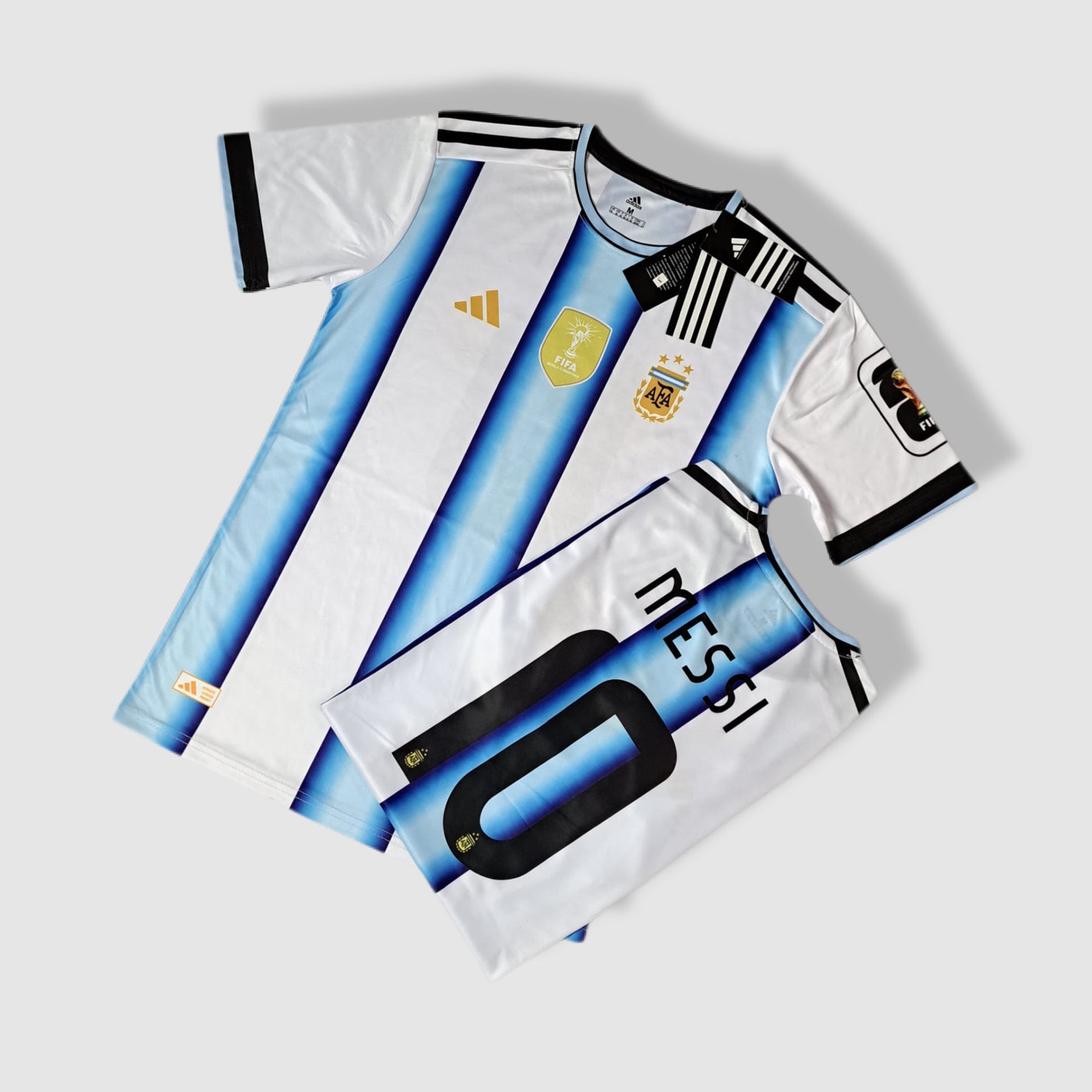 This Argentina blue and white t-shirt features the iconic number 10 of Messi, the renowned Argentinian soccer player. Made with high-quality materials, the t-shirt is both comfortable and stylish, allowing you to show off your love for Argentina and its star player. Perfect for any fan or soccer enthusiast.